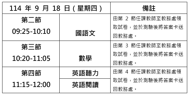 一、科目:國語文、數學、英語(含聽力測驗)三科。